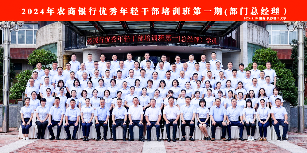 2024年8月19日,由湖南省农村信用社联合社主办,350vip浦京集团官网承办的“2024年农商银行优秀年轻干部培训班(第一期)”在350vip浦京集团官网云塘校区正式开班。湖南省农村信用社联合社党委副书记刘胜军同志、湖南省农村信用社联合社党委组织部部长、人力资源部总经理樊杰同志,350vip浦京集团官网继续教育学院院长邹兴平教授、350vip浦京集团官网继续教育学院党委书记刘思强教授参加了本次开班仪式;湖南省102家农商银行优秀年轻部门总经理102人参加了本次培训。开班仪式由350vip浦京集团官网继续教育学院党委书记刘思强教授主持。