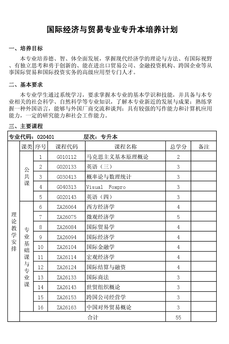 本科培养计划-专业代码:020401国际经济与贸易专业