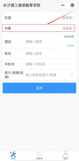 (2)点击对象-维修类别,选择相应报修类别,如下图所示。