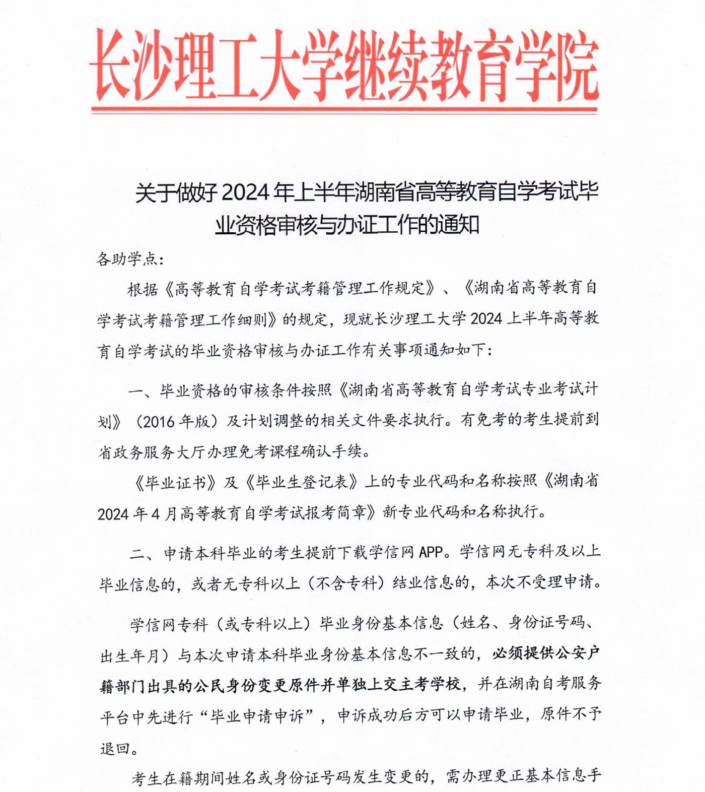 关于做好2024年上半年高等教育自学考试毕业资格审核与办证工作的通知
