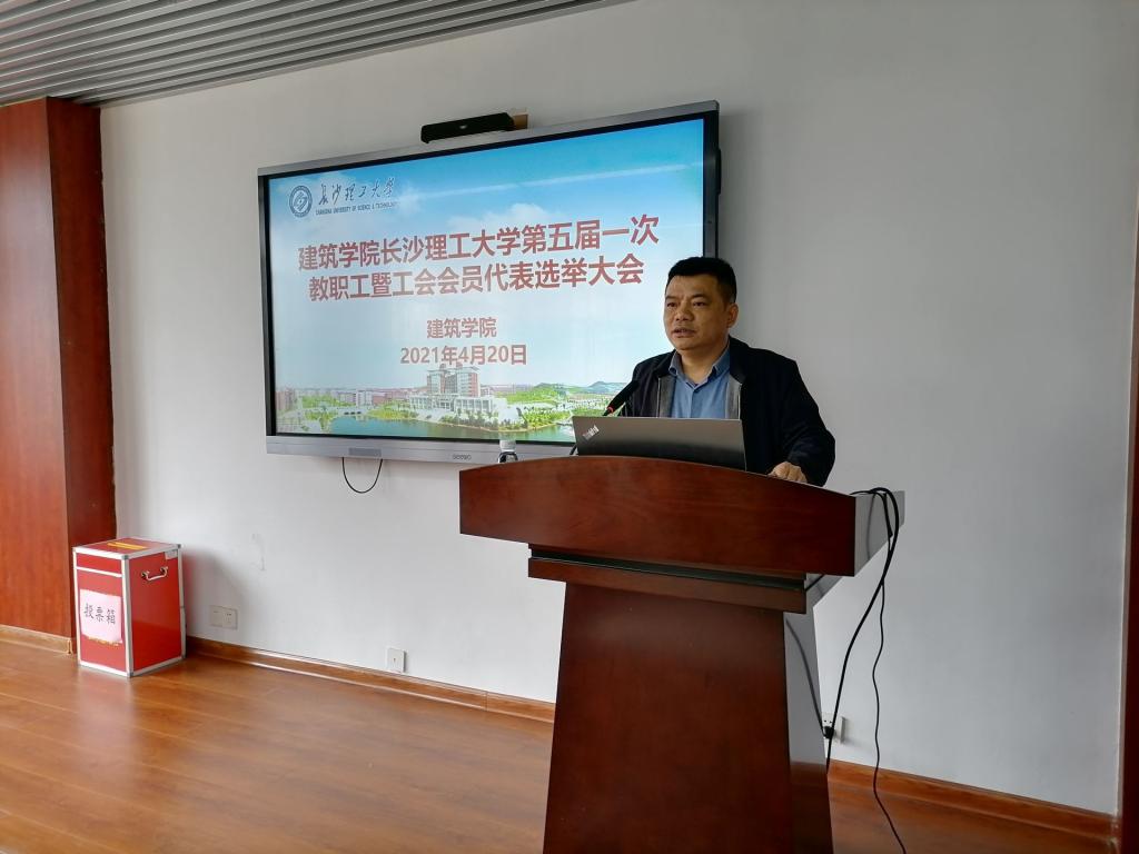 4月20日下午,建筑学院分工会在金盆岭校区16教建筑学院多功能报告厅召开350vip浦京集团官网第五届教职工暨工会会员代表大会建筑学院分工会代表选举大会,选举产生350vip浦京集团官网第五届教职工暨工会会员代表大会建筑学院分工会代表。会议由学院工会主席谢士成主持。学院53名教职工(工会会员)参加了大会。