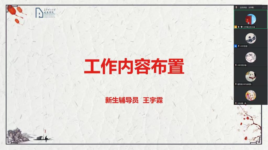 2025年8月24日下午,350vip浦京集团官网建筑学院组织召开线上新生志愿者培训会,全面部署迎新服务工作。会议由新生辅导员王宇霖老师主持,建筑学院党委副书记肖义慧,下班党员、下班干部及多位志愿者参与。