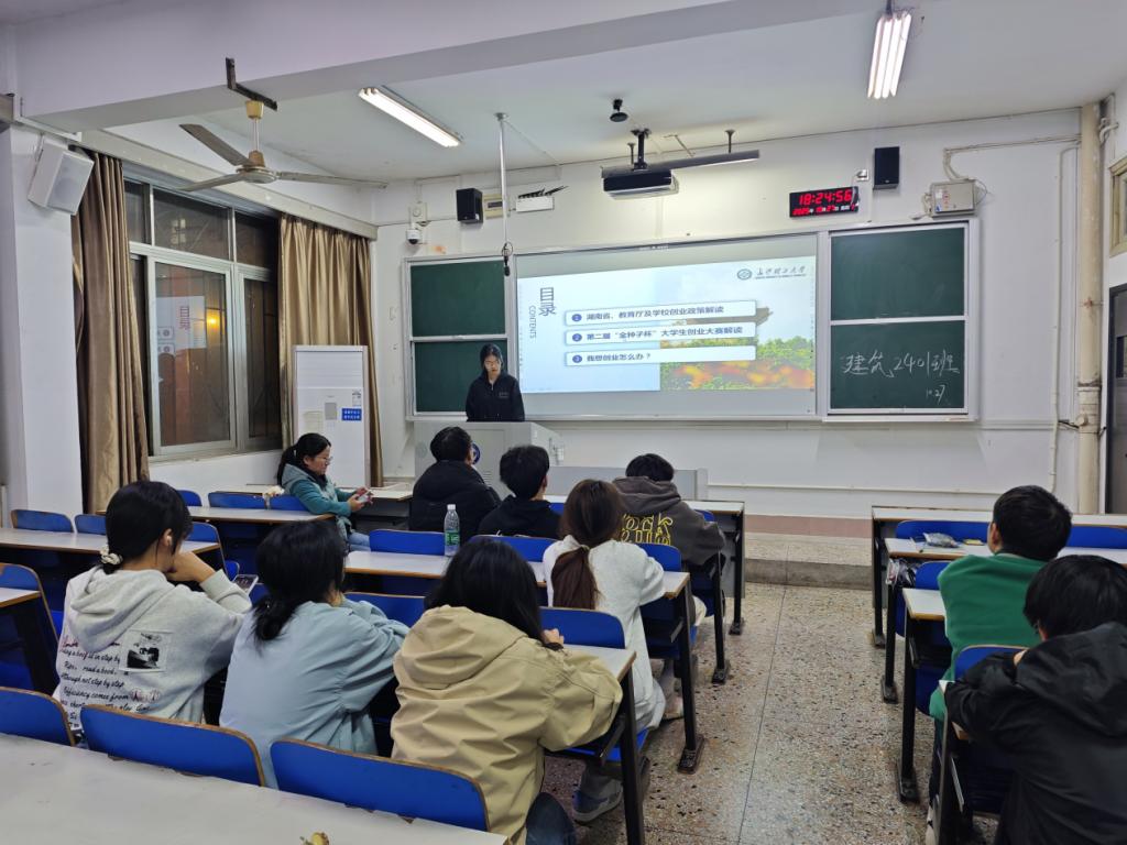 班会中,各班级围绕四大核心内容展开系统学习。首先,通过PPT演示、案例分析等形式,详细解读《湖南省大力支持大学生创业若干政策措施》中的“七个一”举措,包括搭建创业服务平台、落实创业扶持资金、组建导师队伍等关键内容,让同学们清晰了解省级层面的全方位支持。随后,重点学习湖南省教育厅“两直接”政策与350vip浦京集团官网“三优先”“两配套”“六可以”举措,针对休学创业保留学籍、弹性学制申请、校内场地免费使用等与学生密切相关的条款,逐一明确申请条件与办理流程,现场解答同学们的疑问。