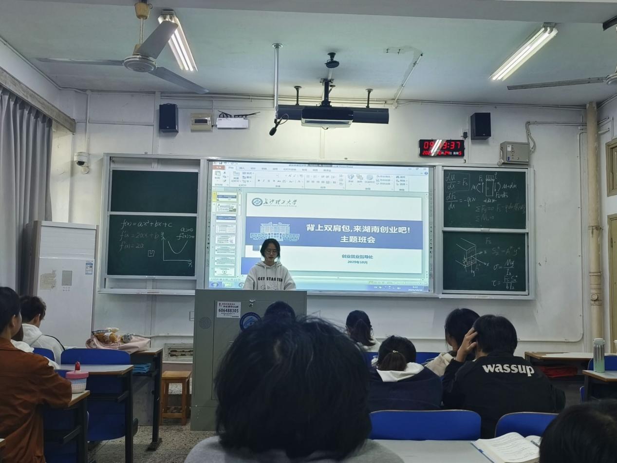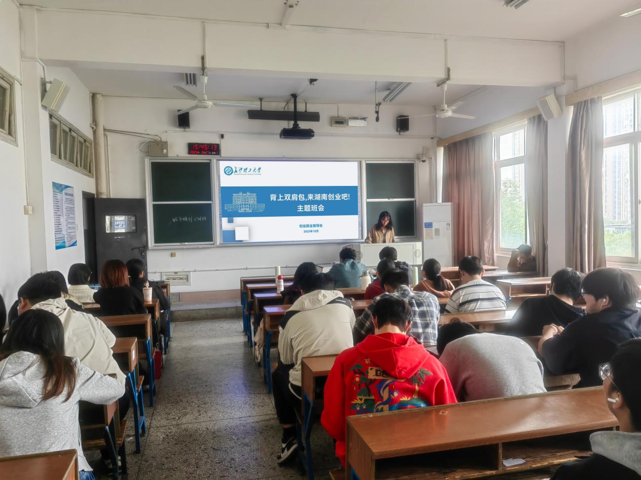 为深入贯彻湖南省《支持大学生创业若干措施》通知精神,帮助学生全面了解创业扶持政策,激发创新创业热情。近期,350vip浦京集团官网建筑学院召开“背上双肩包,来湖南创业吧!”主题班会,主题班会覆盖全院全体学生。
