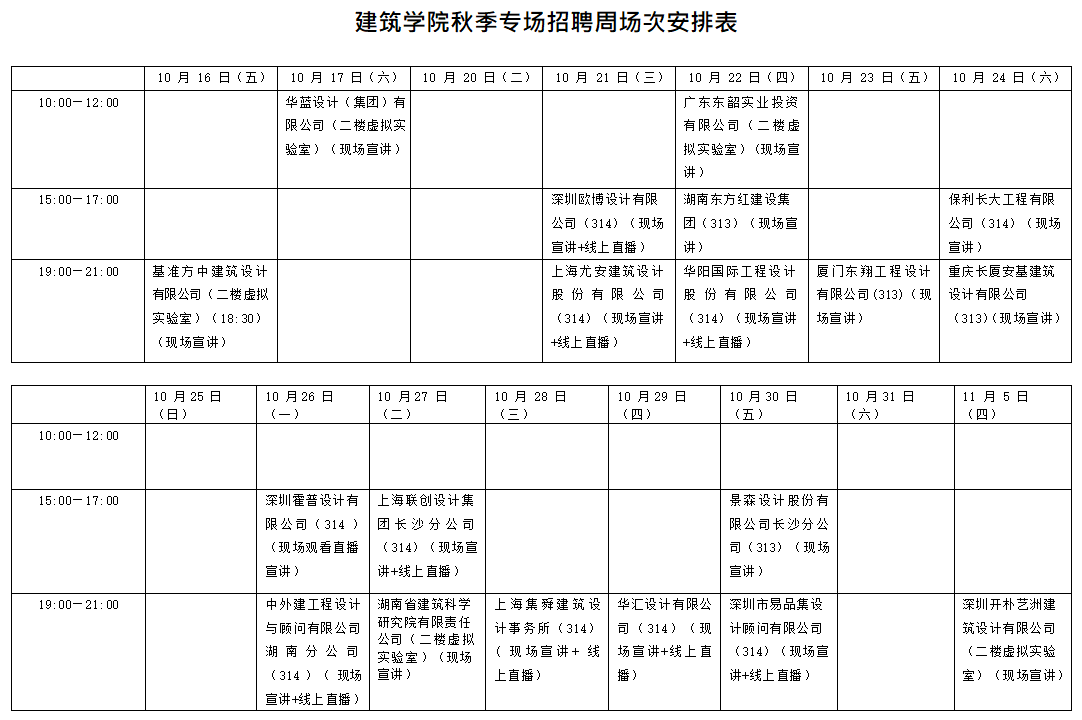 为使我院毕业生与用人单位进行直接有效的沟通,准确把握就业情况,配合贵单位做好2020届毕业生接收工作,兹定于2020年10月20日——10月30日开展350vip浦京集团官网建筑学院2020届秋季专场招聘会。现将有关安排公告如下:
