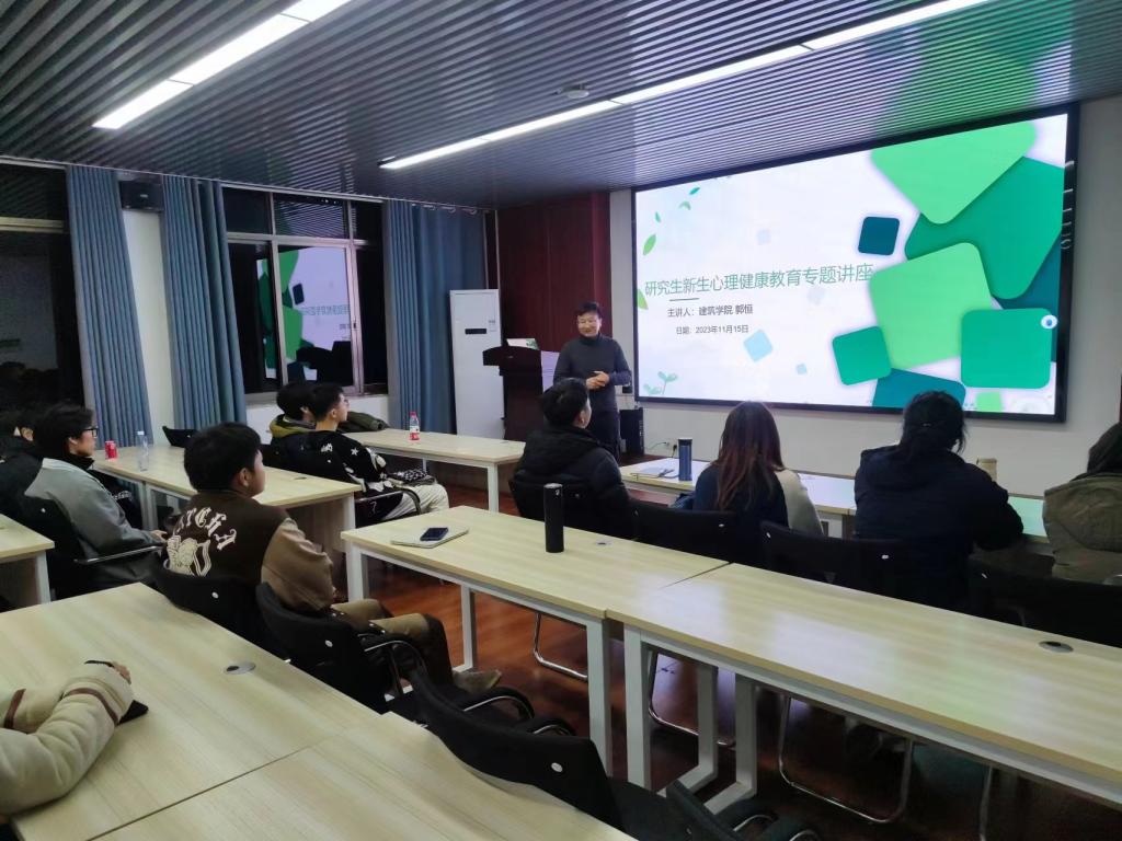2023年1115日晚上7:00,建筑学院于16教314会议室,召开“从心出发,向光而行”研究生心理健康教育专题知识讲座,建筑学院心理辅导员郭恒老师担任主讲。研究生新生40余人参加本次会议。