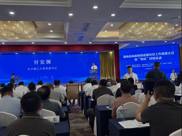 7月24日,2025年湖南省高校科技成果转化工作推进大会暨“双高”对接活动在湘潭市召开,本次会议由湖南省科学技术厅、湖南省教育厅、湖南省卫生健康委员会、湘潭市人民政府主办,高校、县市区(园区)、企业共400余名