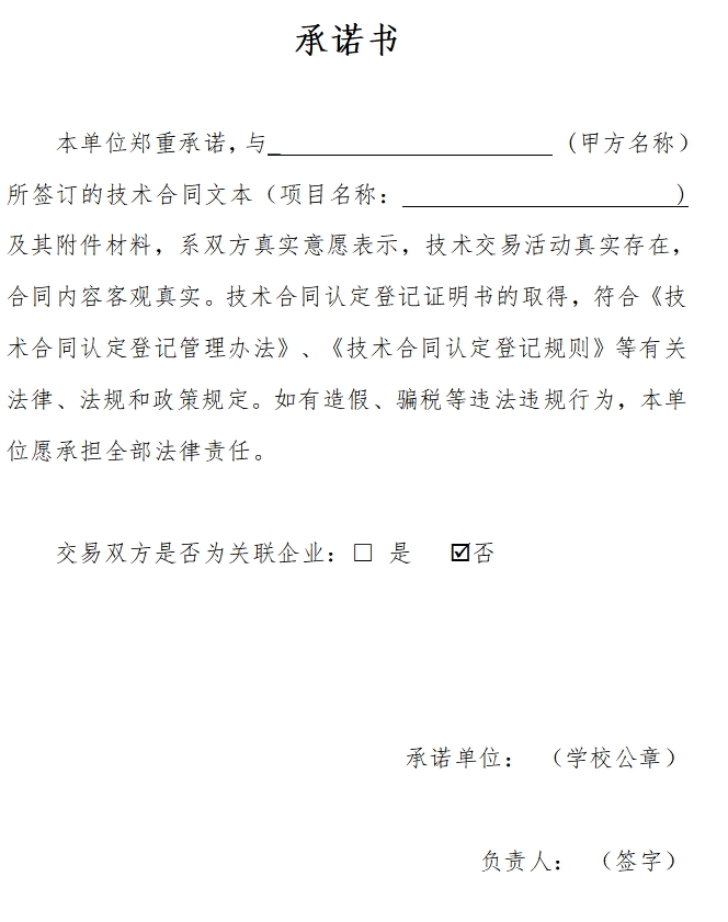 技术合同认定申请模板(承诺书、登记导入表)