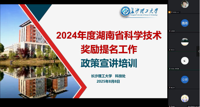 为推动2024年度湖南省科学技术奖提名工作顺利举行,切实提升浦京科技奖励申报质量与成效,8月8日下午,浦京举办2024年度湖南省科学技术奖励提名工作政策宣讲线上培训会,共有60余名老师参加会议,会议由校科技处挂职副处长龙卓主讲,科技处副处长陈铭言主持。