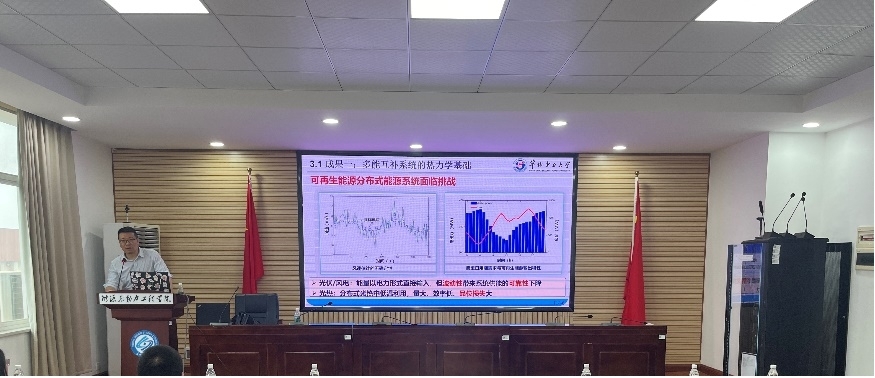 王教授首先阐述了分布式能源的概念,指出它与集中式能源融合是构筑未来清洁低碳、安全高效能源体系的发展方向。报告中展示了生动的实例分析了其优劣势,并提出了协同规划与运行的技术路线。王教授从研究背景、热力学基础、随机与鲁棒规划等方面深入介绍了多能互补分布式能源系统的应用及实例,并分享了其团队在多能互补系统的热力学基础、源荷不确定性场景刻画与预测方法、分布式能源系统随机/鲁棒规划、平抑源荷波动的主动调控策略、多主体多用户的协同规划与运行及多能互补综合能源系统规划平台等关键技术与成果。这些内容为在场的师生提供了宝贵的学术经验和启示。报告结束后,我院师生积极与王教授进行了深入的交流和讨论,现场气氛十分热烈。
