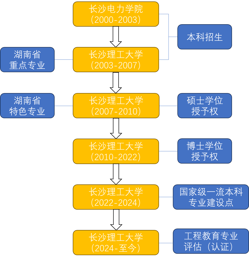 本专业始建于2000年,具有20余年的办学历史沉淀,2006年被评为湖南省重点专业,2007年获“供热、供燃气、通风及空调工程”硕士学位授予权,2008年被确认为湖南省普通高等学校特色专业,2010年获“供热、供燃气、通风及空调工程”博士学位授予权,2022年获批“国家级一流本科专业建设点”,2024年通过工程教育专业认证。