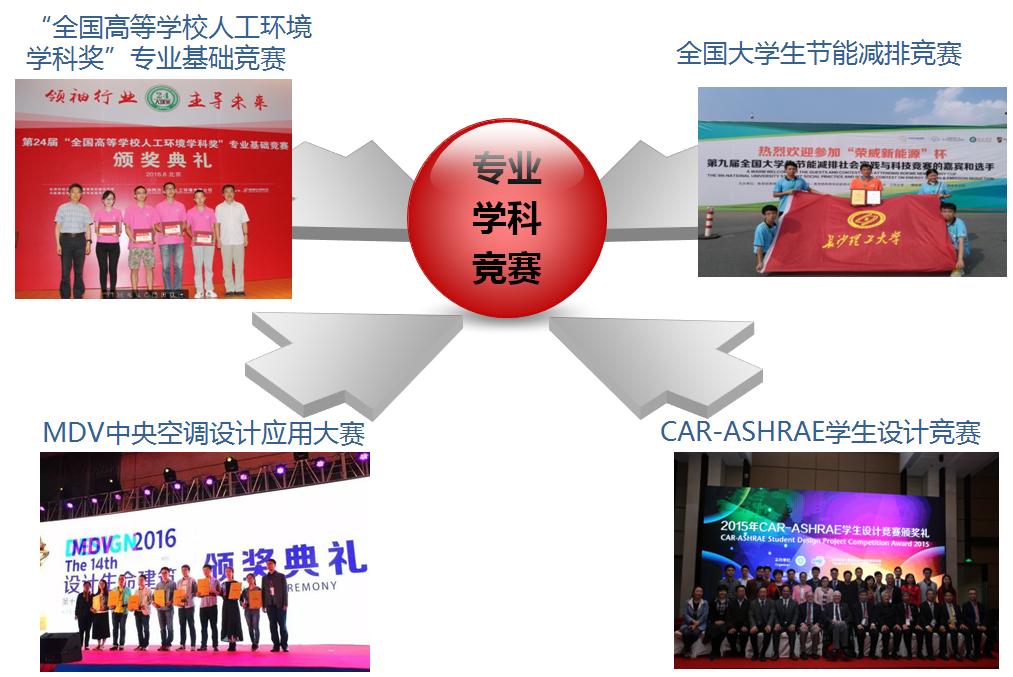 学生获得“全国高等学校人工环境学科奖”专业基础竞赛 、全国大学生“节能减排”竞赛、“挑战杯”全国大学生课外科技作品竞赛、MDV中央空调设计应用大赛、CAR-ASHRAE学生设计竞赛、格力GMV中央空调设计大赛、全国大学生英语竞赛等多项大奖。