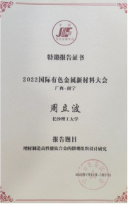 716日,由中国有色金属学会主办的2022国际有色金属新材料大会在南宁举办。我院周立波老师、谭磊老师参加会议。
