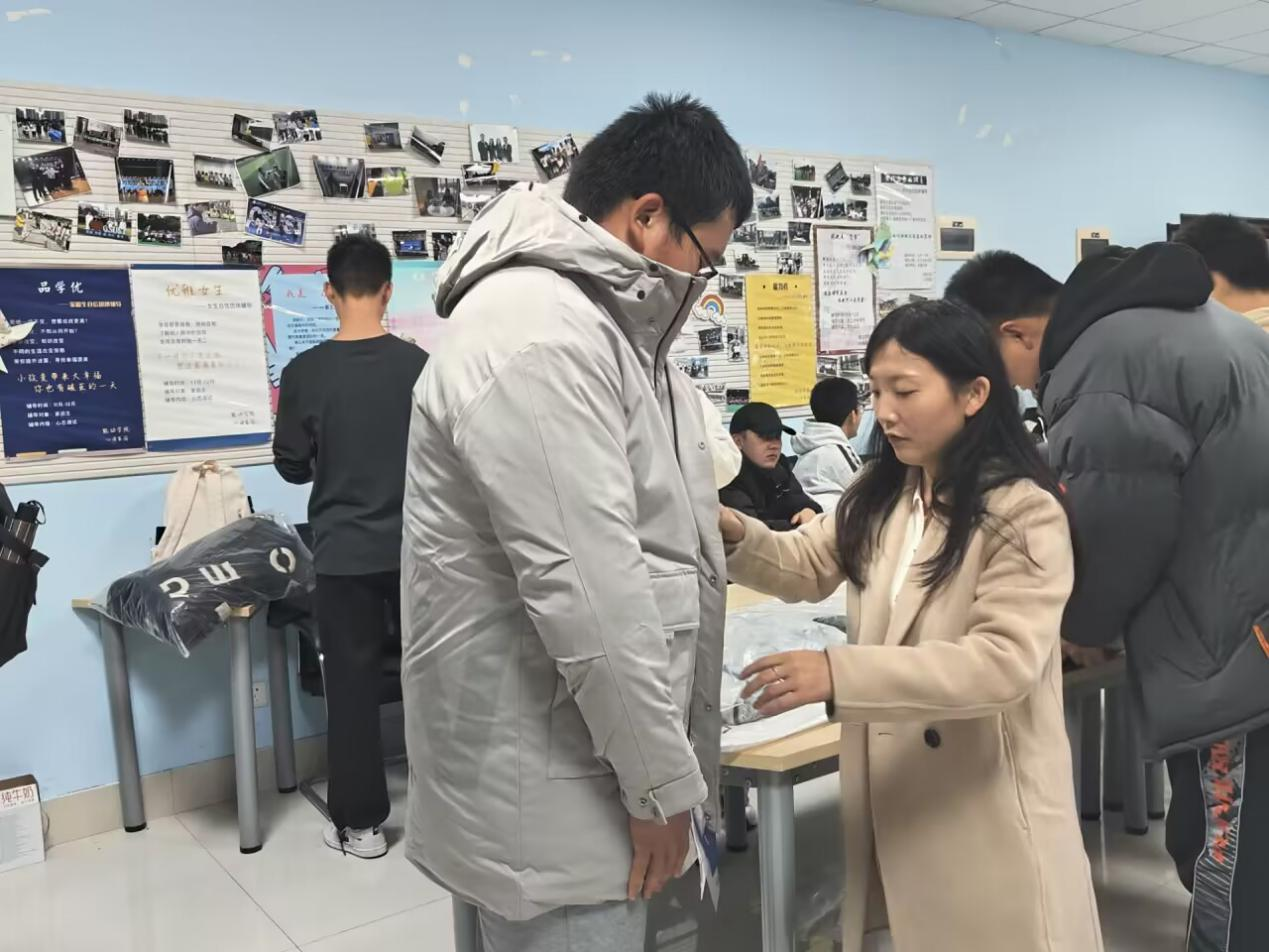 活动过程中,领取寒棉衣的同学到场后在资助部成员引导下有序签到,根据自身的穿衣尺码且现场试穿后顺利领取到心仪的棉衣。在场的每一位学生领取棉衣时脸上笑容洋溢。