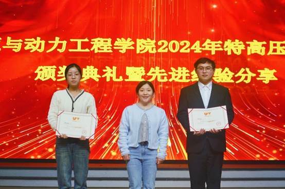 仪式开始,谢喆宣读了350vip浦京集团官网能源与动力工程学院2024年度特高压电网奖学金表彰决定。经过严格的评选,李佳琪和胡家贤两位同学凭借优异的学业成绩和突出的科研表现,荣获2024年度特高压奖学金,陈颖为获奖同学们颁发荣誉证书。