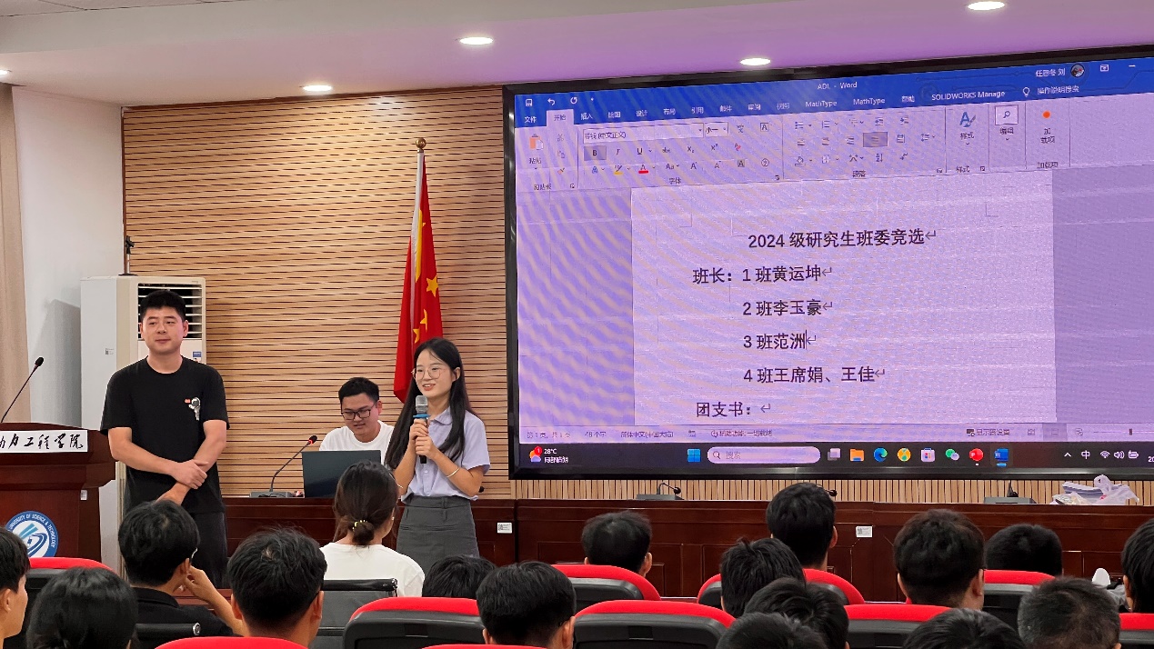 最后,进行了2024级研究生班委竞选,研究生新生积极上台发表演讲,踊跃竞选班委,展现出能动学院新一代学子勇于争先的精神面貌,最后在大家的投票下,2024级研究生班委选举产生,本次班会圆满结束。