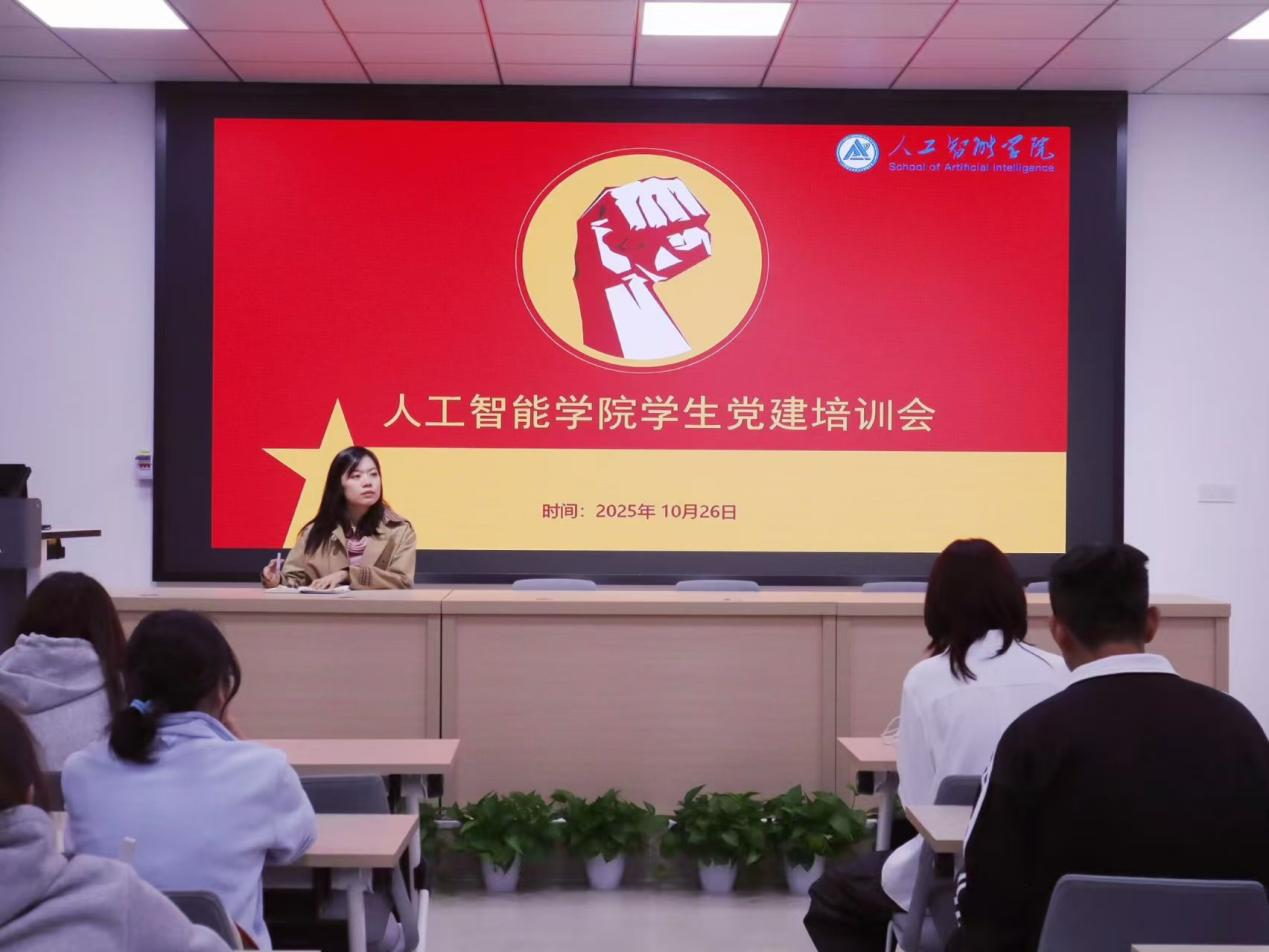 为进一步加强学院学生党建工作实效,提升学生党建工作组凝聚力与向心力,10月26日晚,人工智能学院在院A201召开院学生党建工作培训会。人工智能学院党建辅导员杨舒文、院学生党建服务中心全体成员、各学生党支部支委参会。会议由院学生党建服务中心部长张昕月主持。