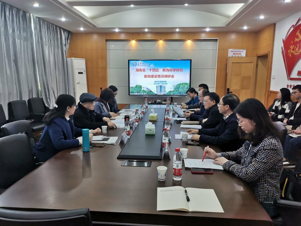 11月20日,湖南省“十四五”教育科学研究基地建设情况调研会在浦京举行。调研组长原湖南第一师范党委书记彭小奇、省教育科学规划办副主任谢剑虹、校党委副书记、基地负责人刘建民、社科处处长刘建江、经管学院院长彭新宇、基地首席专家黄维及基地成员出席。会议由社科处处长刘建江主持。