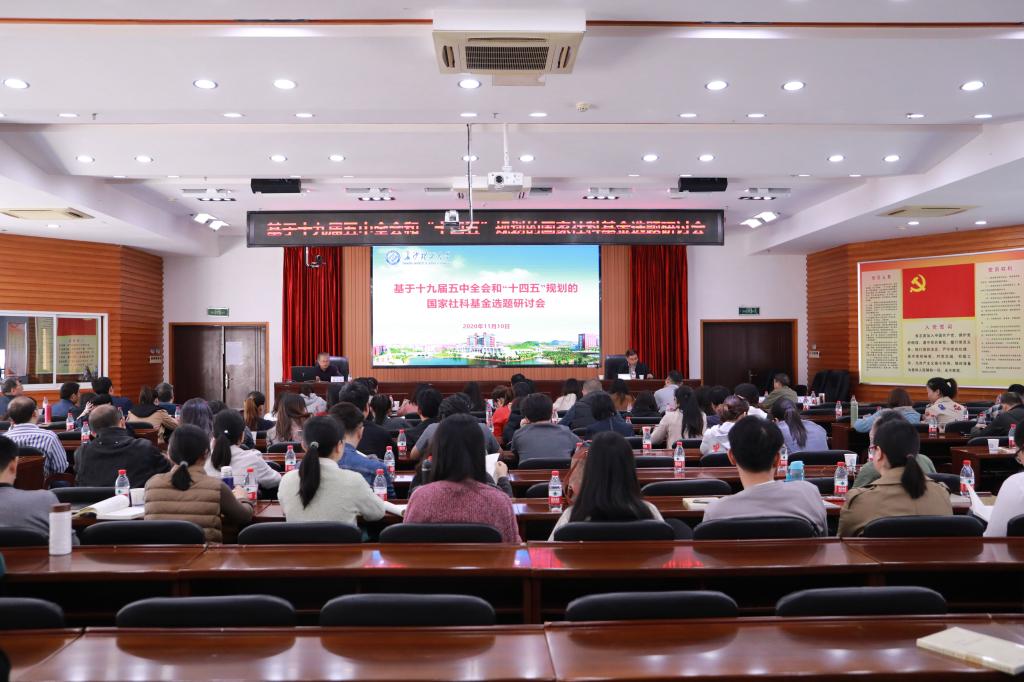 2020年11月10日,浦京召开“基于党的十九届五中全会和‘十四五’规划的国家社科基金项目申报选题研讨会”。校党委副书记、社科联主席邹宏如教授出席并讲话。社科处处长刘建江主持会议,文科学院科研副院长、科研主任干事、科研骨干及青年博士100余人参加会议。