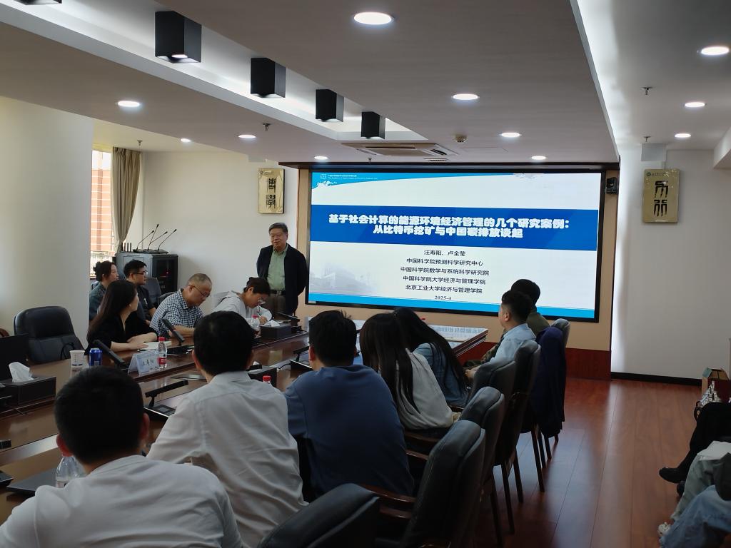 4月15日,350vip浦京集团官网“学科交叉与创新发展”系列讲座第1期成功举办。发展中国家科学院院士、国际系统与控制科学院院士、中国科学院杰出研究员汪寿阳作“基于社会计算的能源环境经济管理的几个研究案例:从比特币挖矿与中国碳排放谈起”主题报告,同时邀请北京工业大学经济与管理学院青年教师卢全莹教授进行分享。讲座由社科处处长刘坚教授主持,各学院教师代表50余人聆听讲座。
