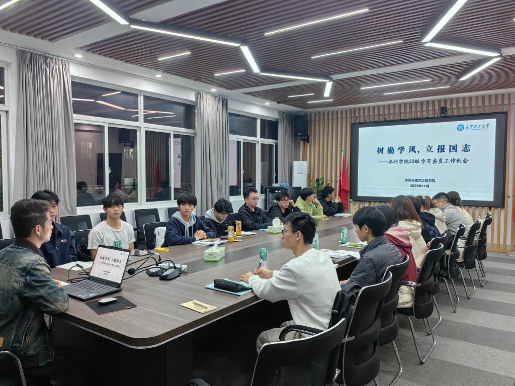 为精准把握学业动态,凝聚学风建设合力,11月12日晚,水利学院在新能源一栋420会议室组织召开2023级学习委员工作会议。此次会议由年级辅导员张海林主持,全体2023级学习委员参加。