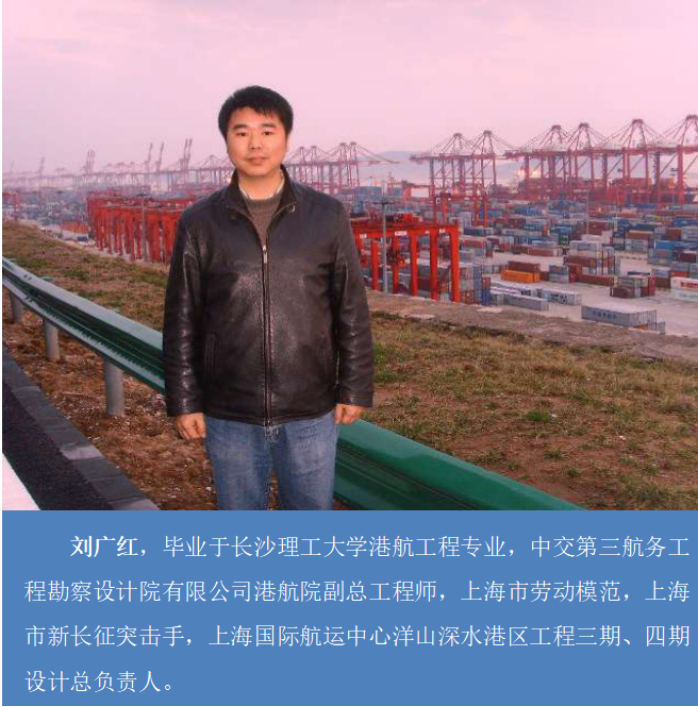 刘广红,毕业于350vip浦京集团官网港航工程专业。中交第三航务工程勘察设计院有限公司港航院副总工程师,上海市劳动模范,上海市新长征突击手,上海国际航运中心洋山深水港区工程三期、四期设计总负责人。