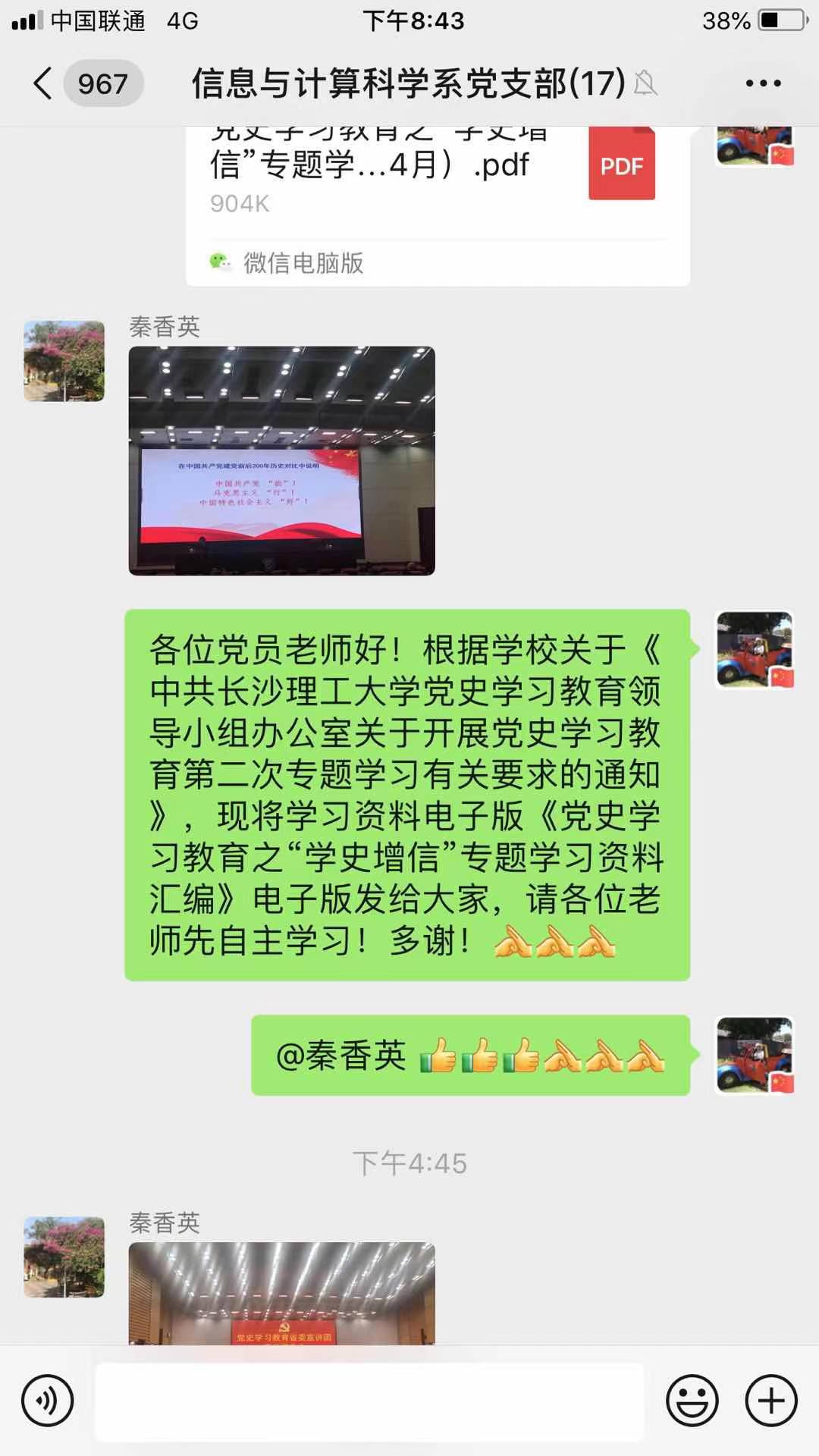 4月13日下午,根据《中共350vip浦京集团官网党史学习教育领导小组办公室关于开展党史学习教育第二次专题学习有关要求的通知》以及学院党委部署,信息与计算科学系党支部开展了“学史增信” 专题学习。活动由支部书记李姣同志主持。