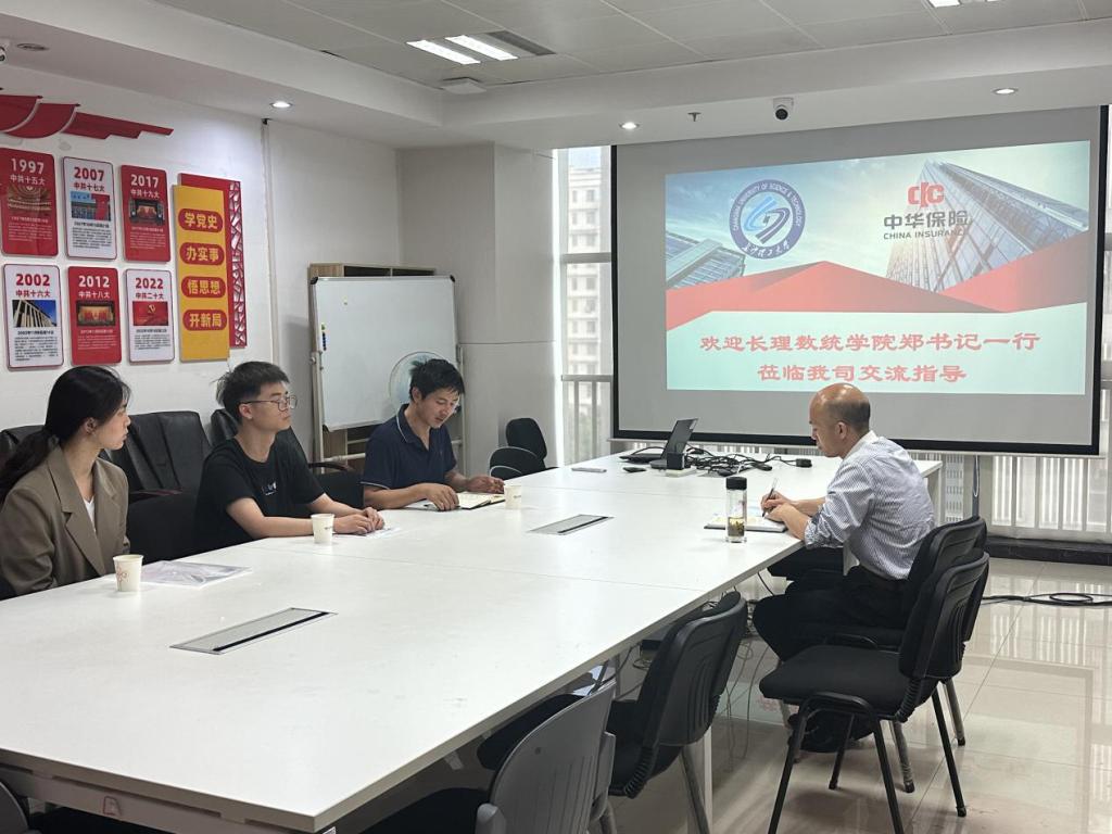 5月25日下午,为进一步落实“访企拓岗促就业”的工作要求,数统学院党委书记副书记郑忠辉带2名应届毕业生到中华联合保险集团股份有限公司湖南省分公司走访调研。