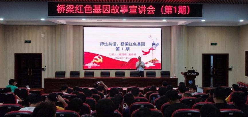 “搭建军民鱼水情,架设百姓连心桥”、“炸不毁的桥,灭不了的魂”、“陡地风云突变色,炸桥挥泪断通途”、“星星之火可燎原,胜利荣光桥见证”、“以史为鉴记国耻,桥梁强国再出发”,一段段红色桥梁故事令人热血沸腾。2022年6月24日,土木工程学院桥梁工程系教工党支部和学工办在云塘校区工科二号B302联合举行了“师生共话:桥梁红色基因”主题活动,由桥梁工程系教工党支部戴理朝老师进行了桥梁红色基因故事宣讲,桥梁工程专业部分师生参加了此次讲座。