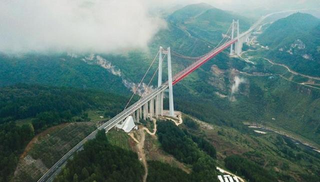 赤水河大桥,双塔门式钢桁梁悬索桥梁,2017年开工建设,2019年年底建成通车,桥梁主跨为1200m,我院承担主桥施工监控工作