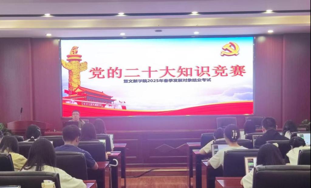 为贯彻落实党的二十大精神,积极探索“党建+互联网”新模式,进一步提升发展对象的理论知识水平,5月22日12时10分,“党的二十大知识竞赛暨文新学院2025年春季发展对象结业考试”于浦京金盆岭校区九号教学楼218室成功举行。