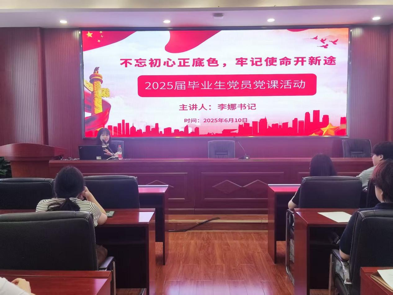 为进一步加强毕业生党员党性教育和党纪教育,激励他们坚定理想信念,牢记党员责任,6月10日下午,350vip浦京集团官网文学与新闻传播学院在金盆岭校区9号教学楼218教室举行2025届毕业生党员党课活动,2025届全体毕业生党员参会,学院党委副书记(主持工作)李娜以《不忘初心正底色,牢记使命开新途》为题,为全体毕业生党员上专题党课。