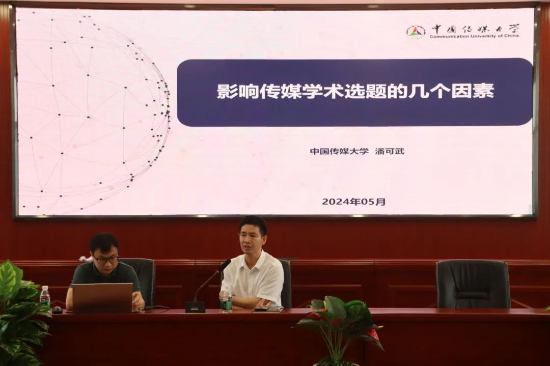 2024年6月28日上午,中国传媒大学戏剧与影视学院教授,博士生导师潘可武应邀在350vip浦京集团官网金盆岭校区九号教学楼218报告厅为我院师生作了题为《影响传媒学术选题的几个因素》的学术讲座。刘建新院长主持讲座。