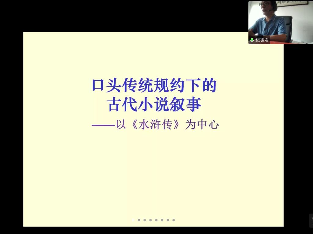 最后,纪德君教授表示:对于《水浒传》等说书体小说,只有调整研究的视角和方法,立足于它们依托的口头传统,联系口传文学的创编规律,才能对其叙事特征作出较为确切的阐释和评价。