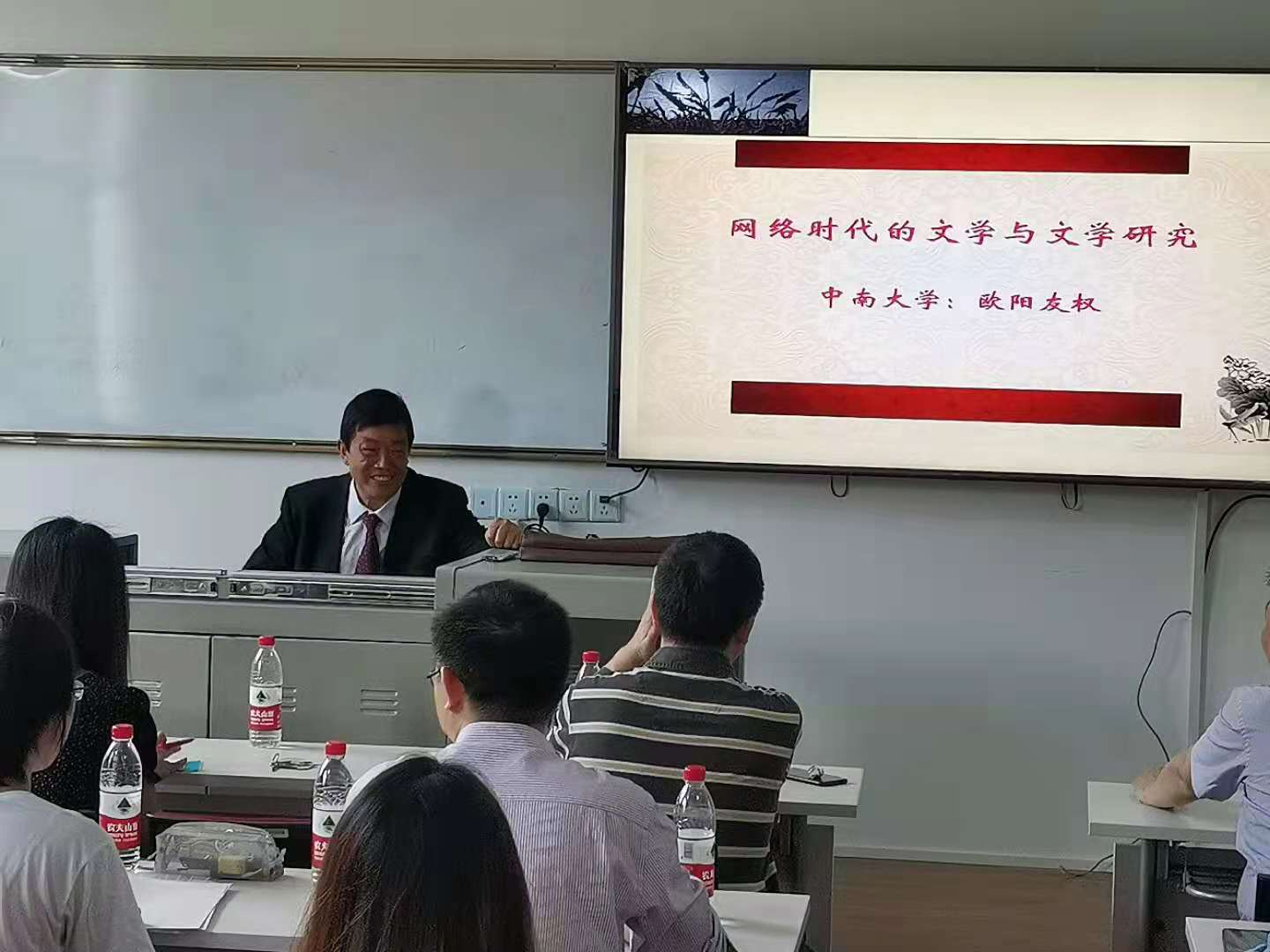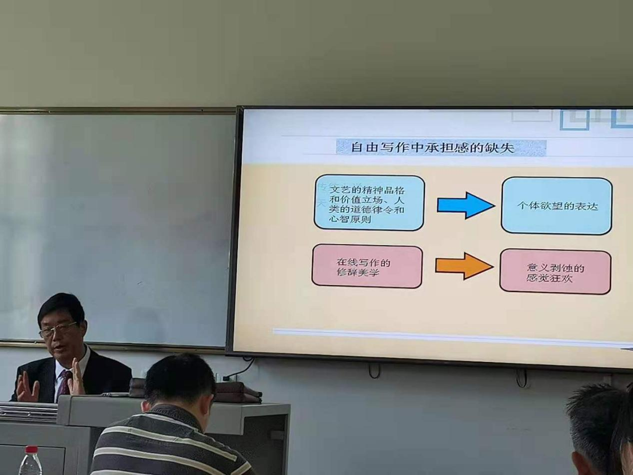2021年5月8号早上9点于金盆岭校区7教303,中南大学欧阳友权教授莅临浦京,做了题为《网络时代的文学与文学研究》的学术讲座,讲座由易彬教授主持,文新学院副院长周云鹏教授、宁淑华教授、郑劭荣教授等老师与19、20级全体中文研究生参加了讲座。