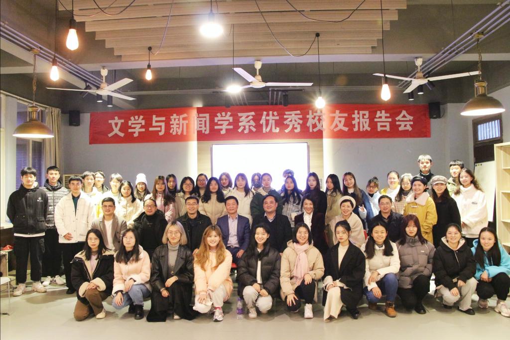 2020年12月20日下午2点,文学与新闻学系优秀校友报告会在文科楼B501顺利举行。优秀校友刘原、万芮、曾高飞、刘琼、王萌、李平等校友应邀参会,系党总支书记伍接朝等系领导及文新系60余名学生参加报告会。