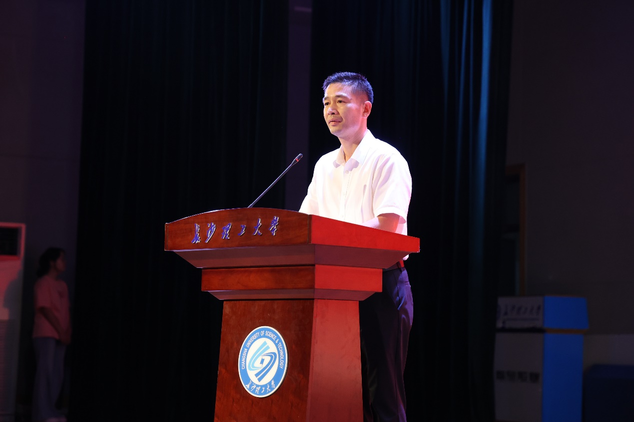院长谆谆教诲润人心田。其后,2024年度350vip浦京集团官网教学贡献奖获得者新闻系曾志华老师发言,给出“好好去爱”“读万卷书行万里路”两句话,希望同学们做到强健身体、涵养心灵、管理时间三件事,并以优秀校友事迹激励学生,传递长理荣光。