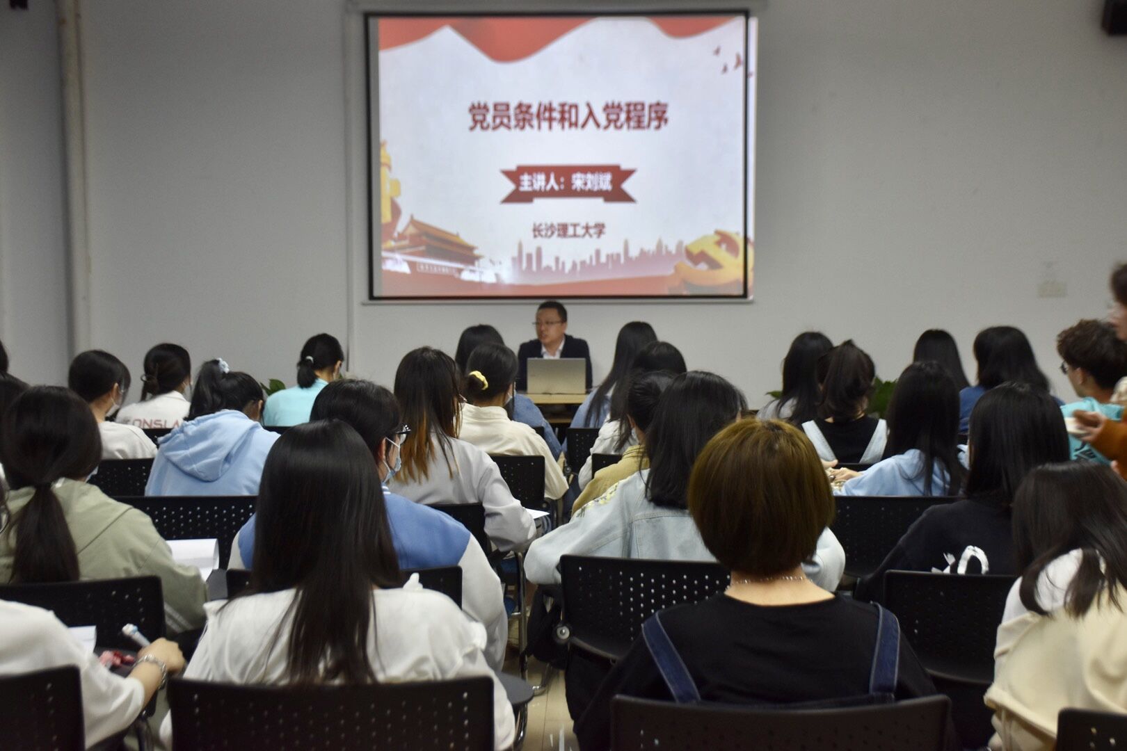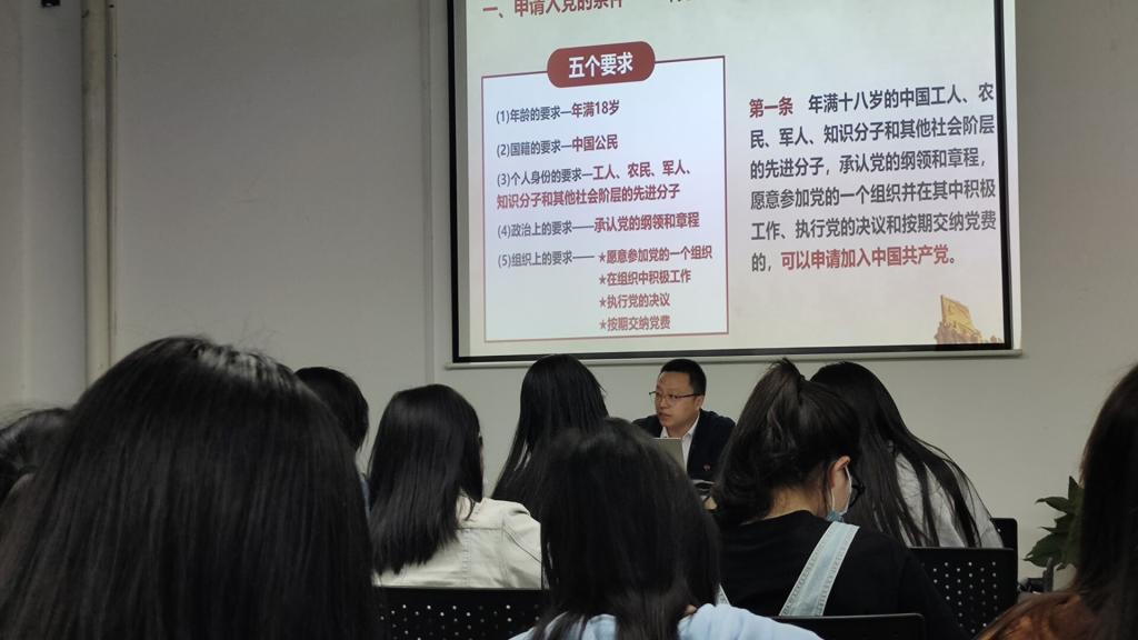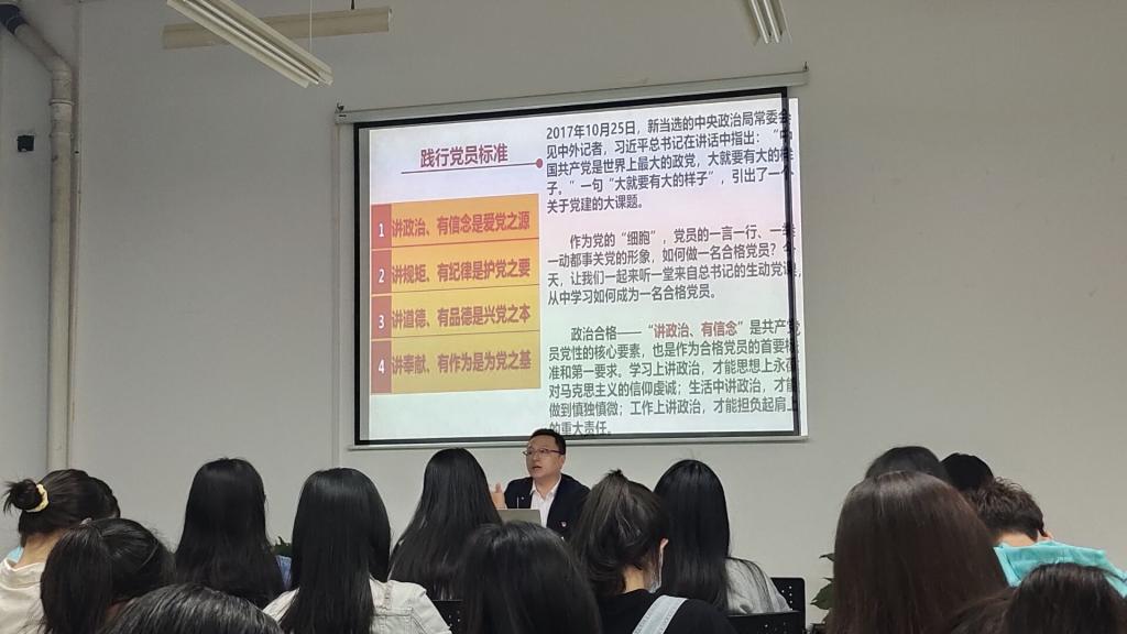 党课是对党员和申请入党的积极分子进行教育的重要方式,为提高我院入党积极分子的党性修养,2022年4月21日晚上19时,文新学院在工科3号楼B210教室举办第39期入党积极分子云塘校区第三次党课学习,化学化工学院党委副书记宋刘斌老师为全体学员授课。