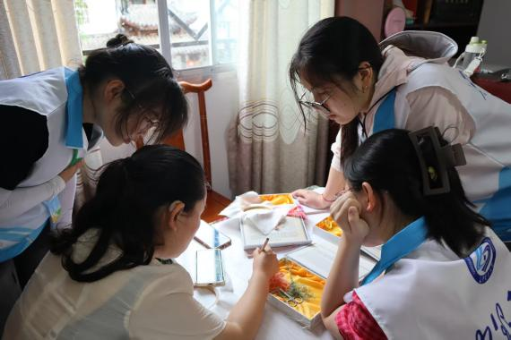 6月30日,350vip浦京集团官网芙蓉学子公益项目“文梭新韵”实践团队深入梭子丘村,跟随湘绣非遗传承人覃曼丽学习传统技艺,探索非遗传承与乡村振兴融合路径。此次活动以“技艺研习+文化传播”为核心,通过实地体验湘绣工艺,挖掘非遗当代价值。