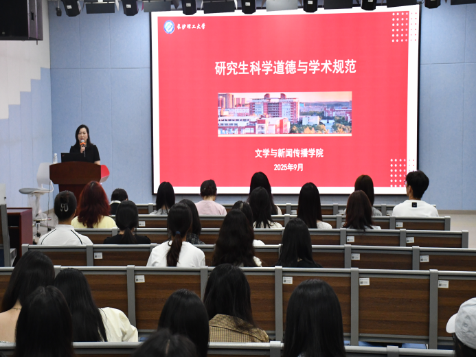 为加强研究生学术修养,培养严谨的学术态度,9月18日,文学与新闻传播学院副院长戴钰在9教113召开了以“研究生科学道德与学术规范”为主题的会议,文学与新闻传播学院2025级全体研究生参加
