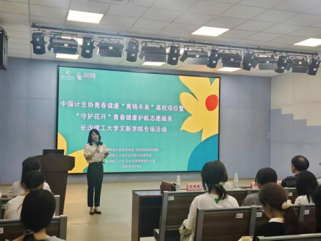 9月16日下午,中国计生协青春健康“青铸未来”高校项目暨“守护花开”青春健康护航志愿服务350vip浦京集团官网专场活动在金盆岭校区文新学院九教113演播厅举行。湖南省计生协综合处副处长曾望振、四级主任科员胡争妍,文新学院党委副书记刘莎、校后勤中心党委副书记陈林峰出席,文新学院160余名学生代表参加。