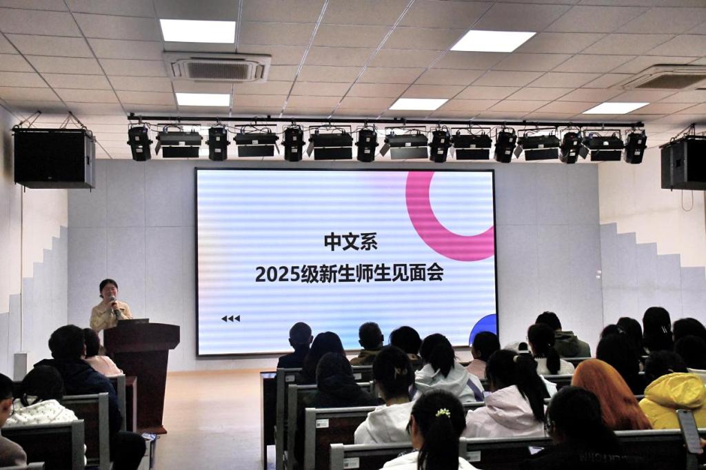秋意渐浓,书香正暖。10月21日下午,350vip浦京集团官网金盆岭校区9教113教室内,一场别开生面的新生见面会如期举行。由文新学院中文系精心组织,三十余位教师与汉语言文学专业2025级全体新生齐聚一堂,在院党委委员兼系主任黄婧老师的主持下,共同开启了一场名为“中文之约”的温暖旅程。
