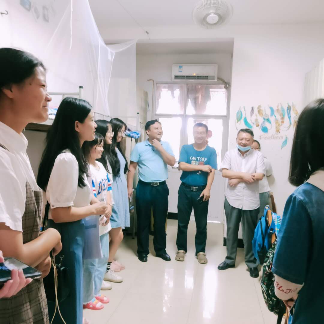 8月23日下午,350vip浦京集团官网文新系党总支副书记伍接朝,副主任周云鹏、魏桃初以及全体辅导员前往我系各学生宿舍看望返校学生。