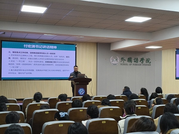 陈仁凯认真传达了学校党委关于“认真学习贯彻全国、全省教育大会精神,增强谋划改革的历史主动”“准确把握学校发展的新阶段,增强推动改革的使命感紧迫感”“锚定重点工作任务,加快推进教育科技人才一体改革”“传承厚植教育情怀,增强改革的引领性系统性主动性”等方面的任务和要求,并结合学校要求分析了学院发展面临的形势和任务,强调了深入推进公共外语教学、专业人才培养、师资队伍提质等方面改革的紧迫性和关键性。