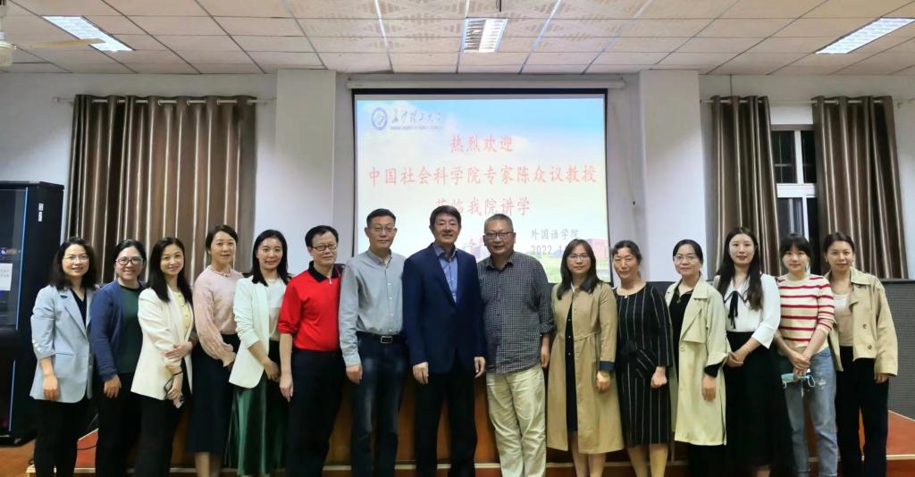2022年11月9日晚,350vip浦京集团官网外国语学院特邀中国社会科学院学部委员陈众议教授来浦京讲学。此次讲座主题为“比较文学方法举隅”,由外国语学院副院长、翻译与跨文化研究中心主任谭莲香博士主持,外国语学院段胜峰院长、刘彬副院长、季红琴副院长及全院百余名师生参加。