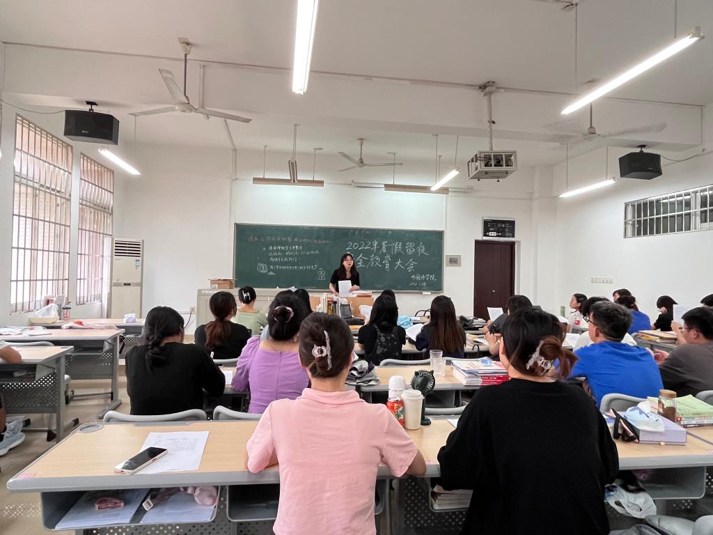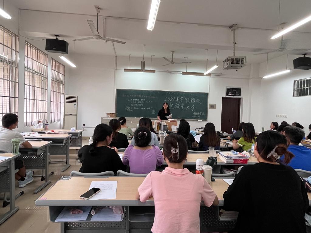 2022年6月24日,350vip浦京集团官网外国语学院2022年暑假留校安全教育大会在文科楼四楼A403考研自习室召开,本次会议由19级辅导员龙洋主持,外国语学院19级有留校意愿的同学参与本次会议,因其他原因无法现场参会的同学,通过腾讯会议的方式参与这次的暑假留校安全教育大会。