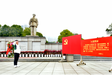 在雷锋塑像前,大家认真严肃、充满力量地进行了入党宣誓。“我志愿加入中国共产党,拥护党的纲领,遵守党的章程……”支部全体党员高举右手,握拳过肩,庄严宣誓。时光交叠,雷锋在入党宣誓时的那份激动似乎也在每位党员同志的胸膛中共振。时代各有不同,青春却一脉相承。雷锋精神是行进在时代里的永恒信念,铮铮誓言彰显着新时代青年党员的坚定决心!