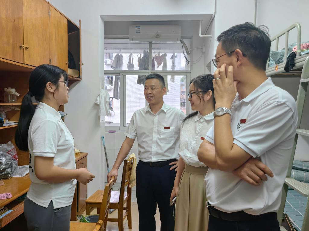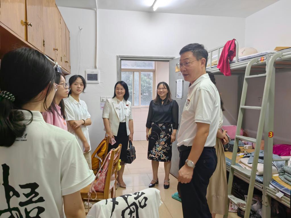 9月29日09月30日,外国语学院迎来了2023级本科生新生报到,为了更好地关怀新生、关爱新生、关心新生,了198名新生入学报道后的校园生活适应情况,了解新生的学习、生活需求,教育引导新生提高安全意识谨防上当受骗,外国语学院全体党政班子成员及全体辅导员深入学生宿舍走访,与学生们亲切交流。