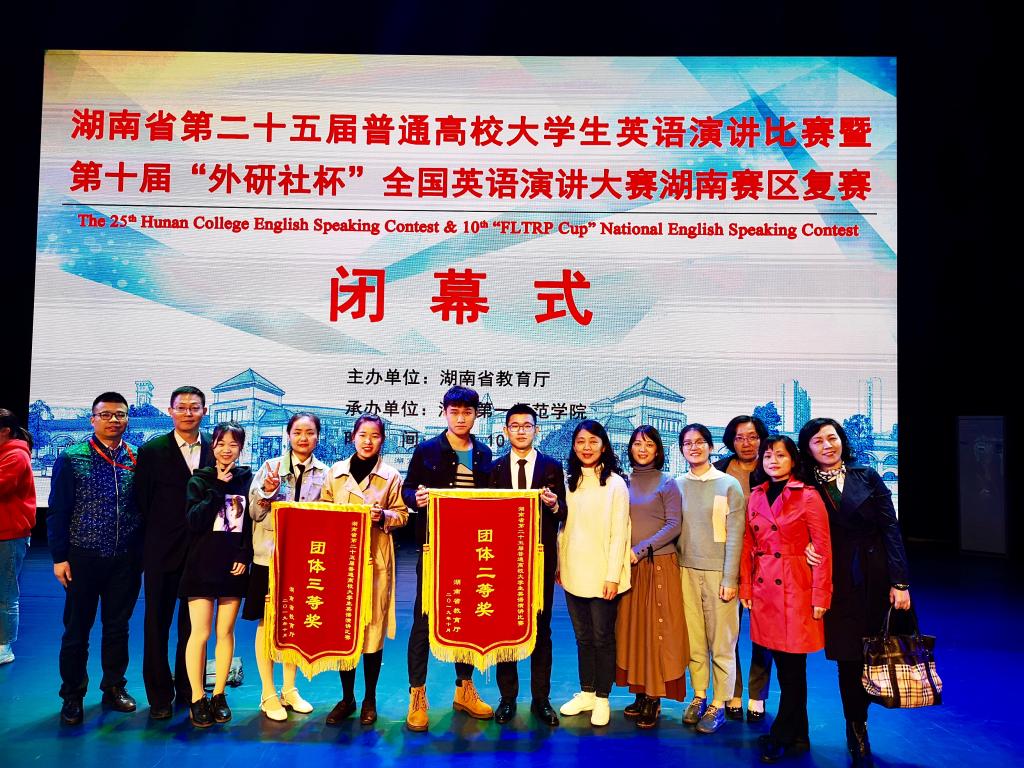在10月27日结束的湖南省第二十五届普通高校大学生英语演讲比赛暨第十届“外研社杯”全国演讲大赛湖南赛区复赛中,浦京代表队获得竞赛一组团体二等奖(第一名),城南学院代表队获得竞赛二组团体三等奖。其中浦京汽车与机械工程学院阳学恒获得非专业组个人一等奖(第二名),经济与管理学院陈颖仪获得非专业组个人三等奖,外国语学院英语1701班陈康获得专业组个人三等奖。城南学院市场营销专业陈宜群,李姗姗获得非专业组个人三等奖,方涵娜获得专业组个人三等奖。指导老师为张志武、刘力、潘莹、孙文娟、彭娅以及王浩萍。