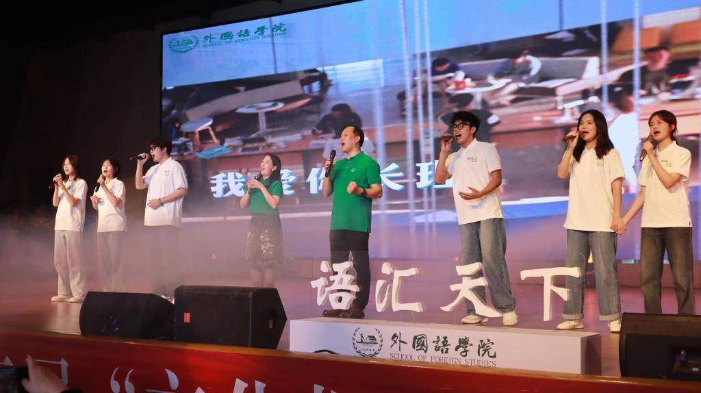 所有获奖学生带来诗朗诵《行走中国,摆渡文化》,同学们以朗诵的形式将自己的事迹娓娓道来。她们当中有人发表高水平论文,有人赴海外实习求学,有人寻访红色景点助力整理翻译资料……虽奋斗在不同方面,但都为文化传承创新与对外推广做出自己的贡献。教学育人奖获奖者刘力老师分享了自己的获奖心得,向与会师生分享了自己在带领学生参与学科竞赛、开展课堂教学等方面的经历与感受。现场播放宣传片《秋罗园满,爱在三教》,满园银杏落秋风,一树金黄一树秋,在这丰收的季节里,四位教师带来歌曲《在银杏树下》,动听的歌声将活动的气氛推向高潮。